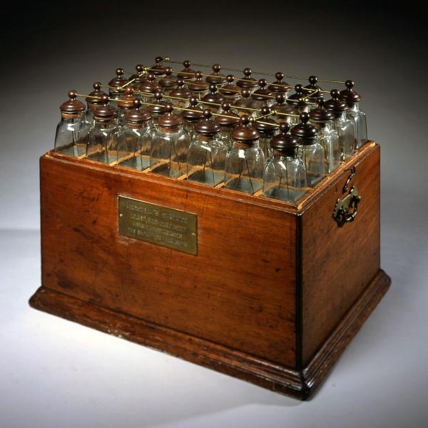 For a final experiment with Leyden jars, Franklin asked whether the charge on the jar was influenced by shape. This was not so absurd as it may seem. Franklin's first discovery, remember, had been that the shape of conductors had an effect on their ability to discharge an electrified body. So the question about the shape of the jar was hardly silly. To answer the question, Franklin constructed a condensor consisting of two lead plates separated by a flat sheet of glass. It produced the same effect as Leyden jar. Franklin then made a series of eleven such flat condensers and linked up the lead plates with a wire, creating what he was the first to called an "electrical-battery.