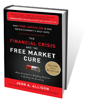 Last year, John Allison became the new president and CEO of the Cato Institute, succeeding the legendary Ed Crane. I therefore picked up his book— The Financial Crisis and the Free-Market Cure (McGraw-Hill, 2013)—as an interested citizen who shares the author’s and the institute’s pro-capitalist perspective. And it proved to be just what I was looking for: the perfect combination of free-market theory and first-hand knowledge of the financial industry. The latter, of course, is drawn from Allison’s incredibly successful twenty years as CEO of the major southeastern bank BB&T. During his tenure, the bank’s assets grew from $4.5 billion to $152 billion.