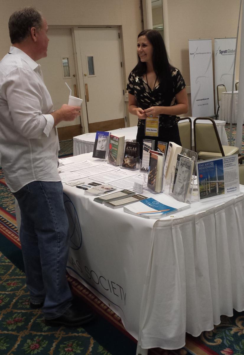 We handed out essays, stickers, palm cards, and copies of TAS's new pamphlet, Myths About Ayn Rand (now available as an ebook for $0.99 ). Many people approached the table to take materials, tell us about their favorite Ayn Rand works, and learn more about The Atlas Society.